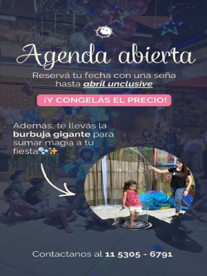 Válido para eventos infantiles a realizarse durante ,enero $335000, febrero $ 340000, marzo $ 370000 ,Abril $ 385000 y mayo $ 395000 (PROMO VERANO :de regalo la BURBUJA GIGANTE)