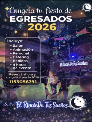 Válido para eventos infantiles a realizarse durante abril $ 360000.- mayo $ 370000.- junio $ 375000- julio $ 380000, agosto $ 390000 y Setiembre $ 400000- con una seña de 50000 lo congelas !! HACEMOS Q TU EVENTO SEA ÚNICO E INOLVIDABLE “ ( 4/4/2026)