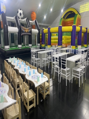 Bienvenidos al Salón Cumpleaños Infantiles! 🎈 Descripción del salón 🎈 ¡Celebra con nosotros, recuerda para siempre! En Espacio Ultra hacemos que cada celebración sea inolvidable. Brindamos animación y coordinación profesional, asistentes, camareras, personal de cocina y ayudantes. Nuestro salón cuenta con amplios sectores de juegos que incluyen plaza blanda, pool, metegol y pentatejo, ideales para todas las edades. Ofrecemos mobiliario de primera calidad con elegantes sillas Tiffany, junto con servicio de mate, té y café para acompañar cada momento. Además, contamos con servicio de emergencias médicas para la tranquilidad de todos los invitados. En Espacio Ultra, cada detalle está pensado para que disfrutes sin preocupaciones. PROMO OCTUBRE Coordinador, animador, asistentes de animador, personal de cocina y camareras Menú infantil servicio de cafe, te y mate plaza blanda juegos de rol (heladería, herramientas, cocina completa, bloques gigantes, jenga gigante pool, metegol pentatejo, inflable gigante (10X9X5 alto) ESTRUCTURAS DE CANDY, MESAS PARA TORTA Y MESA DULCE