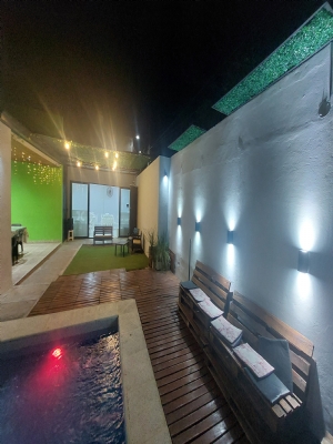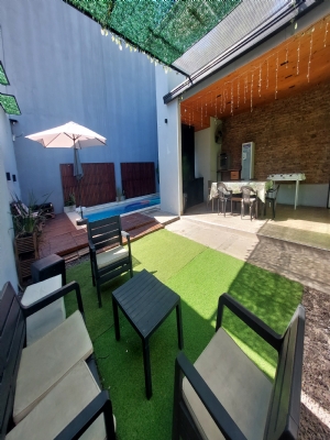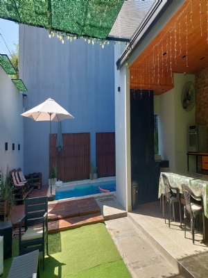 Bienvenidos a Nuestro Espacio para TODO tipo de Eventos Nuestro Servicio Incluye CAPACIDAD 50 PERSONAS (con niños inclusive) 50 sillas / 8 mesas 3 juegos de puff Incluye mantelería color a elección Aire acondicionado y 3 Ventiladores 6 metros de aberturas en Blindex Candy bar básico en blanco + 1 mesa central + 1 pequeña + 1 bolsero + 1 cajón de regalo + 3 candy jars + 1 posa torta central Parrilla con utensilios. Horno para calentar y derretir Piscina de 6mt x 3mt, cascada e hidros con estar en deck y sombrillas Patio con iluminación en guirnaldas Espacio de cocina con pava eléctrica, y utensilios varios. 50 Platitos, 50cucharitas descartables GRATIS! vasos descartables a disposición! Freezer y heladera exhibidora !! 2 juegos de Living de exterior Tres baños completos 3 silletas móviles Wifi en todos los espacios Equipo de sonido: 1 parlante móvil Cama elástica ( por 6hs a elecc. hasta 9 años) Metegol y tejo en el espacio. Sin adicional Doble estacionamiento propio e iluminado Limpieza Básica, sin adicional Consultar precios con decoración y mesas dulces con torta!! Anexos extras consultanos Área protegida FEMECHACO TURNOS y TARIFAS De Lunes a Jueves de 10hs a 17hs y de 18hs a 23,45hs Viernes, Sábados y feriados o para Feriado de 9hs a 17hs y de 18hs a 2am Viernes y Sábados únicamente hasta 2 hs,am. Domingo hasta 00hs DICIEMBRE INCLUYE PISCINA LUNES/JUEVES De 10:00 a 17:00hs DE 18,00 hs a 23:45hs $185mil Turno Completo $265 VIERNES, SÁBADO, DOMINGO, FERIADO y para Feriado. 9hs a 17hs (1er.T.) 18hs a 2am (2do.T.) 6hs $215 mil 8hs $225mil Viernes y Sábados únicamente hasta las 2 am. Domingo hasta 00hs Sábado / Domingo turno completos $350, horas a elección. FINANCIAMIENTO