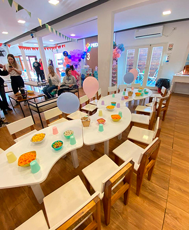 Al entrar, te recibirá nuestro amplio y luminoso salón principal, decorado con una alegre combinación de colores y detalles festivos. Te esperamos con variedad de mesas para adultos, para que tus invitados tengan la comodidades necesarias. Para los más pequeños, contamos con una increíble zona de juegos que incluye un inflable gigante. Este espacio garantiza horas de diversión y entretenimiento seguro para los niños, mientras los adultos disfrutan de la celebración. Nuestro Parque Acuático y sus toboganes están diseñados para proporcionar una experiencia única en el agua. Festejo para 30 niños y 50 adultos, con posibilidad de adicionar 15 niños extras. Cumple de dos horas y media, sector de torta con fondo led, incluyendo la decoración y sorpresitas. Temáticas disponibles a elección del cumpleañero. Dos animadores durante todo el evento Servicio en cocina para adultos Maquillaje artístico y stand de Glitter. Mega Pelotero inflable Parque acuático exclusivo Tirolesa Canchita de fútbol Juegos de plaza Plaza blanda, juegos de salón, disco y mucho más Salón con aire acondicionado Gran espacio verde Invitaciones Virtuales ¡Recordá! Consultar disponibilidad para tú evento y reservar la fecha con anticipación. Salón Principal