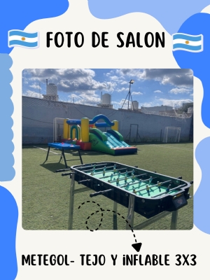 Bienvenidos a Bike and Goal. Todos los combos incluyen: Turnos de 3 Hs Salon Exclusivo Estacionamiento Privado 2 Canchas de fultbol 5 Inflable 5 x 3 Tejo Metegol Servicio de mesa Vajilla para adultos y para niños Limpieza y desinfección Tarjeta virtual Decoración Básica ( globos y banderines según temática) 1 hora de Animación Y entretenimiento a cargo de Diverty Kids. COMBO BASICO 30 Personas: Snacks ilimitados( chizito, tutuca y cascarones) 15 Litros de Gaseosa / agua saborizada. Jarras de Agua sin límite Set de mate Se puede ingresar comida pero debe estar lista para calentar. 40 Personas: Snacks ilimitados( chizito, tutuca y cascarones) 20 Litros de Gaseosa / agua saborizada. Jarras de Agua sin límite Set de mate Se puede ingresar comida pero debe estar lista para calentar. 50 Personas: Snacks ilimitados( chizito, tutuca y cascarones) 25 Litros de Gaseosa / agua saborizada. Jarras de Agua sin límite Set de mate Se puede ingresar comida pero debe estar lista para calentar. COMBO ESTANDAR Para 30 personas: Snacks ilimitados( chizito, tutuca y cascarones) 15 Litros de Gaseosa / agua saborizada. Jarras de Agua sin límite Set de mate 40 pizzetas 30 chips de J&Q 30 chips de pollo 30 patitas de pollo 18 Empanadas decarne 18 Empanadas de j y q 36 sandwiches de miga copetín 20 Tartaletas ( capresse y choclo) 40 PERSONAS Snacks ilimitados( chizito, tutuca y cascarones) 20 Litros de Gaseosa / agua saborizada. Jarras de Agua sin límite Set de mate 40 pizzetas 30 chips de J&Q 30 chips de pollo 40 patitas de pollo 24 Empanadas decarne 24 Empanadas de j y q 48 sandwiches de miga copetín 40 Tartaletas ( capresse y choclo) 50 PERSONAS Snacks ilimitados( chizito, tutuca y cascarones) 25 Litros de Gaseosa / agua saborizada. Jarras de Agua sin límite Set de mate 50 pizzetas 25 chips de J&Q 25 chips de pollo 25 chips de bondiola 50 patitas de pollo 30 Empanadas decarne 30 Empanadas de j y q 60 sandwiches de miga copetín 24 Tartaletas ( capresse y choclo) COMBO PREMIUM Para 30 personas: Snacks ilimitados( chizito, tutuca y cascarones) 15 Litros de Gaseosa / agua saborizada. Jarras de Agua sin límite Set de mate 40 pizzetas 30 chips de J&Q 30 chips de pollo 30 patitas de pollo 18 Empanadas decarne 18 Empanadas de j y q 36 sandwiches de miga copetín 20 Tartaletas ( capresse y choclo) 2 Kg de Torta de crema 40 PERSONAS Snacks ilimitados( chizito, tutuca y cascarones) 20 Litros de Gaseosa / agua saborizada. Jarras de Agua sin límite Set de mate 40 pizzetas 30 chips de J&Q 30 chips de pollo 40 patitas de pollo 24 Empanadas decarne 24 Empanadas de j y q 48 sandwiches de miga copetín 40 Tartaletas ( capresse y choclo) 3 Kg de Torta de crema 50 PERSONAS Snacks ilimitados( chizito, tutuca y cascarones) 25 Litros de Gaseosa / agua saborizada. Jarras de Agua sin límite Set de mate 50 pizzetas 25 chips de J&Q 25 chips de pollo 25 chips de bondiola 50 patitas de pollo 30 Empanadas decarne 30 Empanadas de j y q 60 sandwiches de miga copetín 24 Tartaletas ( capresse y choclo) 4 Kg de torta de crema ADICIONALES 1 Hora de entretenimiento de profe de Educación Física $30.000 Maquillaje artistico por 2 horas $80.000 Toro mecánico $90.000 Inflables XL : $65.000 Cama elastica $45.000 Plaza blanda $45.000 Inflables blanco 2x 2,5: $40.000 Calesita blanca ( hasta 10 años) $50.000 Reloj mecánico: $120.000 Consultar disponibilidad. METODO DE PAGO Se seña con $100.000 ALIAS: Cumplesbikeandgoal Efectivo 10% de descuento Transferencia sin recargo Tarjeta de crédito (3 cuotas con un 15% de recargo) Se congela el precio unicamente abonando el total del valor del cumpleaños. Se deberá respetar la cantidad de personas confirmadas del combo elegido, caso contrario, se cobrara un EXTRA por persona de $3500 c/u. - Consultar presupuesto para cumpleaños de adultos/ BRINDIS de fin de año/ egresaditos/ Baby shower y cumples para niños de 0 a 3 años. ¡Recordá! Consultar disponibilidad para tú evento y reservar la fecha con anticipación. PRECIOS CONGELADOS HASTA EL 31 DE JUNIO 2026.